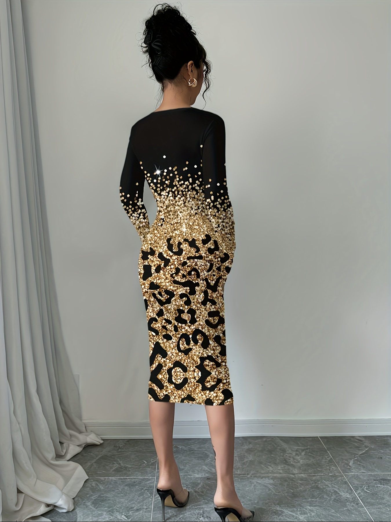 Women'S Elegant Golden Foil Leopard Print Maxi Dress